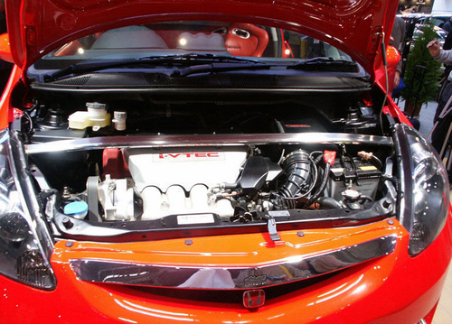 本田的兩廂FIT,原配的排氣量是1300cc,但是經過無限的改裝之后,換上了Integra的K20A引擎,最后馬力改到260匹,可以說是恐怖!