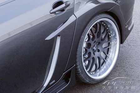 HAMANN采用了很多利于空氣動力性能的部件來裝飾這款M5,譬如說在前風翼上面再增添了一個風翼,這樣能夠提升下壓的力量。如果你不希望這樣做,那就可以選擇一個新款的,更運動化的前風翼,內置的橢圓型霧燈讓寶馬的前臉更加個性化。M5的側臺現在精致了許多,也讓車子的外觀強勁了許多。Characterised by a diffusor the HAMANN為這款車打造的后板部分采用了HAMANN的4管后消聲器,愈加增強了車子的運動感。車頂還有一個風翼,具體的效果和前風翼相同,降低車子在高速行駛時候的浮空力——后部的擾流器同樣也是一個道理,同時由于處在車子的外表,所以還要和外觀部分結合得足夠融洽。如果你是一個對于車子的運動感表現要求很嚴格的車主,你可以使用兩個后擾流器。此外車子的標準后視鏡也被換成了HAMANN運動型的,這是公司特意為所有的左駕駛座版本而準備的,可以電動調節以及加熱,甚至可以電動收起。所有HAMANN提供的,除了前包圍的部件,都是才由炭素合成纖維制造的。