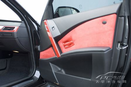 來自勞普海姆的專業調校車商還預備了許多其他的配件供M5的車主們選擇,譬如說加上了一款由炭素制成的儀表板以及中央控制臺之后,乘客也可以讓他們的駕座更加具有賽車的味道。這種感覺在添置了幾件鋁制品之后就越發強烈,HAMANN為乘客提供了輕金屬制成的腳凳,剎車桿以及整套的腳踏。還有一款印有HAMANN 字樣銀色logo的汽車用地毯。