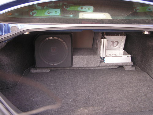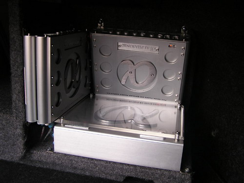 可別小看這三個擠在一起的小個子功放,推動RMS600W的PSW610J,就是其中的一臺1600DA! ![]() 中間還留著一條通道,方便車主平時取放物品 ![]() ![]() |