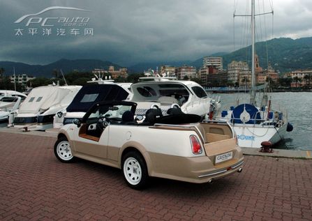 這款個性化的車輛外觀參照Mini Cabrio而造,同時又有一些新的科技以及改進。整車呈現出流線型,車體分隔出一個固定的空間用來上車,車門被一根防盜桿所代替。和某些豪華的游艇一樣,車子的后部加長了70厘米,提供一個便利的額外的使用空間。這樣的設計非常方便你去海邊旅游,你可以把在水中用的呼吸器放在車后,又或者是高爾夫的球桿,甚至,還可以在這個地方帶上一群一起出去玩的伙伴。
