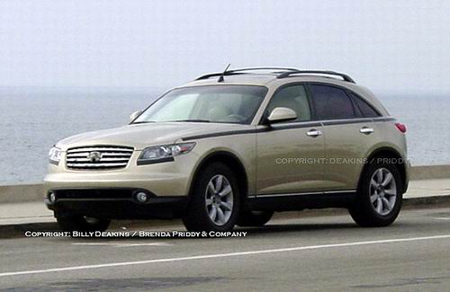 這輛將在 2004 年投產的無限 FX45 車型被攝影師在太平洋沿岸的電子計費停車位上成功拍攝到。外表幾乎跟 2002 北美車展上展出的概念車一樣,很顯然這將會是最終量產車型的款式。