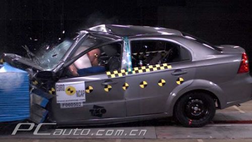 Euro NCAP公布的Aveo正面碰撞照片。