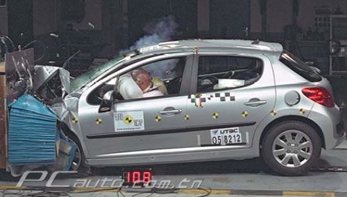 Euro NCAP公布的標致207正面碰撞照片。
