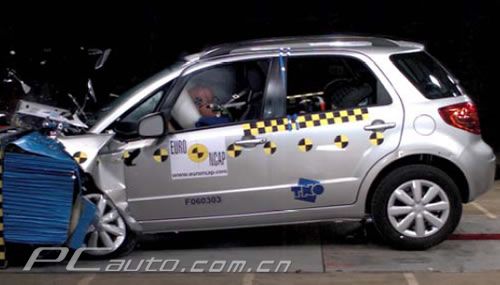 Euro NCAP公布的鈴木SX4正面碰撞照片。