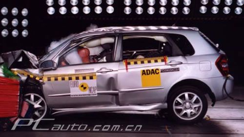 Euro NCAP公布的起亞賽拉圖正面碰撞照片。