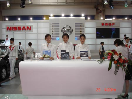 29日,記者在乘用車展現場看到東風日產以精致的展具,大氣的布置與觀眾見面,同時,其廠家攜大氣儒雅的TEANA(天籟),備受歡迎的藍鳥.智尊、陽光以及時尚動感的"全新級別、全新價值"的06款新頤達/騏達全系列車型以及即將在金秋8月隆重上市的新一代優雅轎車――SYLPHY(軒逸)。