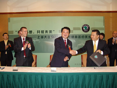 7月7日,上海大眾Škoda首批4S店經銷商簽約儀式在北京飯店舉行,自此,廣受關注的Škoda渠道建設進入實質性的實施階段。上海大眾汽車有限公司與來自全國的25家經銷商代表參加了此次簽約儀式,共同為Škoda的渠道建設書下了濃墨重彩的第一筆。