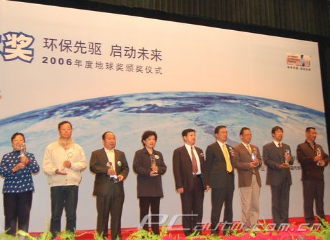 2006年4月21日,在世界第37個“地球日”來臨之際,由國家環(huán)保總局、中國環(huán)境新聞工作者協(xié)會設(shè)立、一汽豐田汽車銷售有限公司支持贊助的2006年度“地球獎”頒獎儀式在人民大會堂隆重舉行。國家環(huán)保總局副局長潘岳、中國環(huán)境新聞工作者協(xié)會相關(guān)人士、一汽豐田汽車銷售有限公司高層、媒體記者及23位獲獎個人和團(tuán)體代表、百位在京大學(xué)生出席頒獎儀式。