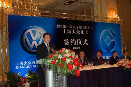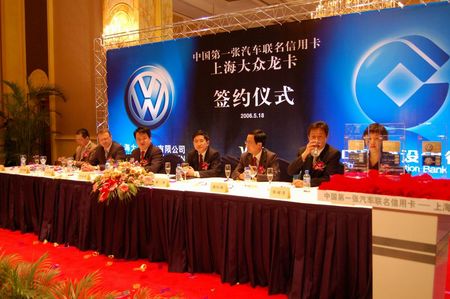 在上海浦東香格里拉大酒店的會場里,中國汽車行業巨頭上海大眾和四大國有銀行之一的中國建設銀行共同召開新聞發布會,并簽署協議,將推出國內首張汽車雙幣種聯名信用卡——“上海大眾龍卡”。