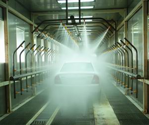 涂裝車間的前處理電泳生產線的設計沿用當今汽車涂裝先進工藝--懸掛積放輸送、 “C”型吊具懸掛、連續帶電入槽等;全線槽體、室體均采用不銹鋼材料結構制作安裝;脫脂除油、磷化除渣、懸液分離、電泳過濾以及超濾和陽極等附屬設施均引進日本三進、美國HYWARD等世界知名的品牌設備。