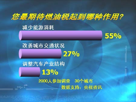 主持人:用數(shù)字掌握生活!我們今天的調(diào)查問題是:您贊成開征燃油稅嗎?