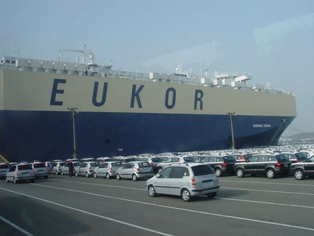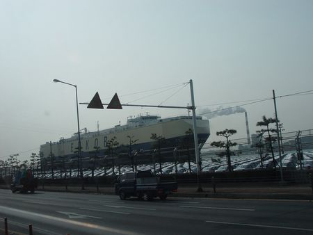 出了第三工廠,我們直奔蔚山工廠的碼頭,這是個可以同時停泊3艘4萬2千噸船舶的專用碼頭。