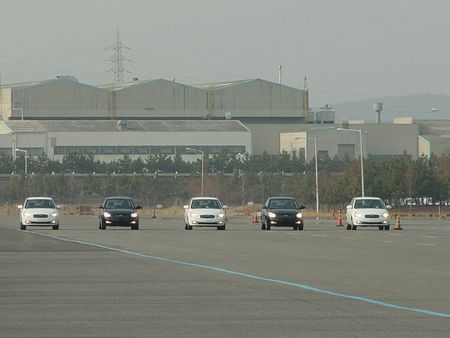 下午我們進入了蔚山基地的試車場,這個試車場和上海大眾的專業試車場也相當類似,主要是用來測試在高速情況下,車輛各個部件的運轉情況。