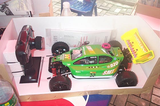 下午舉行了一場電動車模比賽之后,突然下起雨了。比賽不得不中指,各位選手帶著一絲遺憾撤離了賽場……