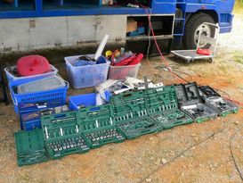 以上就是車隊的部分維修工具,在右圖我們可以看到都是富士原廠的配件,這肯定會讓汽車改裝的發(fā)燒友興奮的!