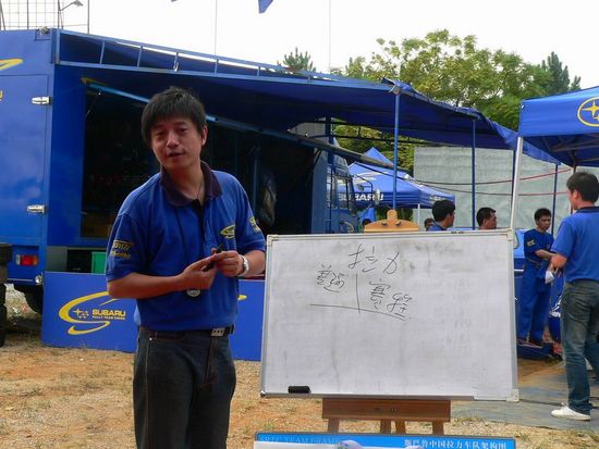 斯巴魯拉力車隊成員--林曦,他正為大家講解拉力賽車知識和今日的活動安排,他本人也是一位非常不錯的賽車手,曾得過不少獎項。