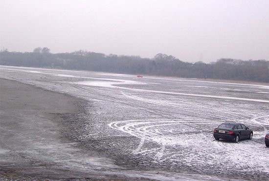 筆者所安排試駕的是一臺A6L 3.0 quattro。坐進車內,感覺3.0升的發動機運轉非常平穩,感覺不到絲毫的震動,聲音也很輕微,不認真留意還幾乎聽不到。在工作人員的一聲令下,筆者掛上S檔,輕踩油門,發動機反應極為迅速,車速在不到5秒內就達到了50km/h,在quattro連同ESP的共同作用下,輪胎與地面幾乎沒有發生任何的打滑現象。以40km/h的速度到達第一個彎角時,由于角度不大,稍打方向,車子便穩穩當當地順著彎道拐過去,沒有出現任何側滑的傾向。車子真的是在冰面上行駛嗎?到達第一個連續S彎,這個彎道幾乎為直角,輕踩剎車,車速迅速降到了35km/h左右,車身開始出現了一點轉向不足,并且開始產生了輕微的側滑,不過在ESP的干預下,車身迅速又恢復了控制。盡管如此,但整個過程似乎能讓人感覺是那么的自然,那么的放心,似乎有種"一切盡在掌握"的感覺。