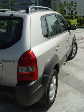 Tucson在外觀長相方面,已經有了長足進步,從頭燈組與引擎蓋造型的搭配,充分凸顯該車款年輕以及時尚風貌,又帶有一點可愛與兇悍的神情來看,相信會受到都會年輕人的喜愛。大尺寸、大面積的不同色保險桿,加上網狀水箱護罩與前霧燈,這種在標榜越野性能的車款上常見到的設計,讓Tucson看起來不光是能在都市地區悠游,更表現出上山下海也一副蠻不在乎的樣子。從側面看過去,車側的腰線讓整體造型更為靈活以及俐落,搭配16吋的鋁圈輪胎恰到好處,視覺平衡性良好。