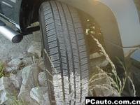 在時速80公里左右時就可聽到較大的噪聲,這也是越野車的通病,可與老切諾基相比,發動機的噪音還是下降了不少。JEEP2500的一大特點是在低速時就可提供較大的扭矩輸出,這一點我們在隨后的越野賽道上有了真切的體會。試車賽道上有陡坡、大坑等各種路況,不時還有大石頭擋路,所以車速只能在20到40公里,但就在這種低速行駛的情況下,JEEP2500的通過性能出色地表現了出來。