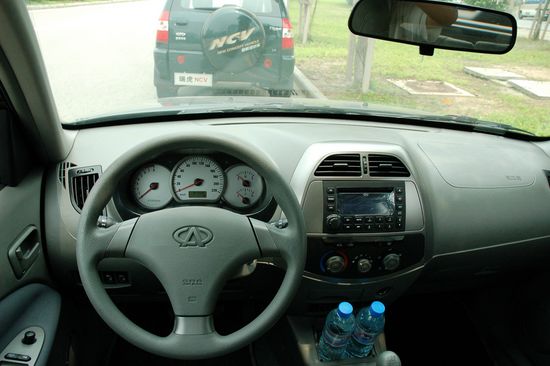 筆者本次試駕的是版本最低的售價僅為7.7777萬的舒適型,不過在配置方面卻相當齊全。ABS+EBD,防眩目內后視鏡、后風窗電子除霧、雙安全氣囊、防盜報警裝置、鋁合金輪轂、遙控門鎖、電加熱后視鏡、四門電動車窗、倒車雷達等裝備一應俱全。在這點上,比起那些售價遠高于它,但仍使用手搖車窗的合資品牌車型而言,奇瑞的確顯得相當的厚道。