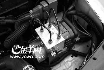 除了發動機,位于發動機機艙左前角的ABS泵特別顯眼,這也是其比富康1.4的一項重要改進。