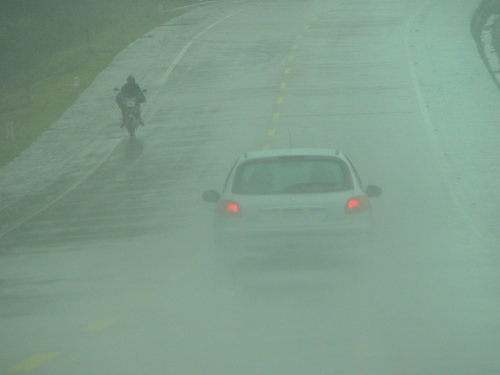 但在不久后,筆者的車很快就被其他同行的車不斷超越,看著他們?cè)谂赃吅魢[而過,水花四濺的背影,筆者也不由得再次踩下了油門直至90km/h。此時(shí)206的表現(xiàn)仍然相當(dāng)?shù)姆(wěn)健,在車內(nèi)能明顯感覺到四個(gè)車輪都仍緊緊地咬死在路面上,完全沒有任何的側(cè)滑的傾向,可見固特異輪胎的抓地力還是相當(dāng)不錯(cuò)的。而從其他不斷超越我的同行們的情況看來,206的性能潛力在筆者手中似乎還能未完全發(fā)揮出來。
