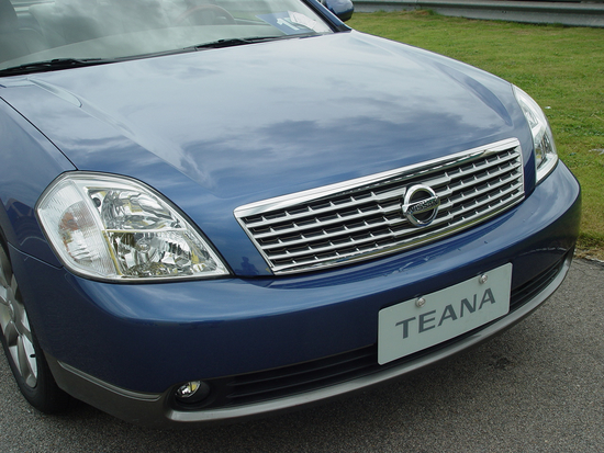 日產中高檔商務用車的前臉散熱格柵已經越來越統一化,就連新的藍鳥也列入其內,天籟更不例外。天籟的散熱格柵除了保持銀色鍍鉻的橫向金屬線條布置外,在局部有些小變化,比如在橫條上增加了一些短小的金屬線段,中央標識位置的線條更加外凸粗壯一些,增加了前臉的飽滿感。水滴形的前大燈和后尾燈在其高端車型CIMA上也可以看到。另外,車門的外拉手設計是天籟外形設計的一個亮點所在,除采用比較流行的橫向外拉式設計外,門拉手的周邊還包有一圈銀色金屬飾條,更顯出整車的精致。