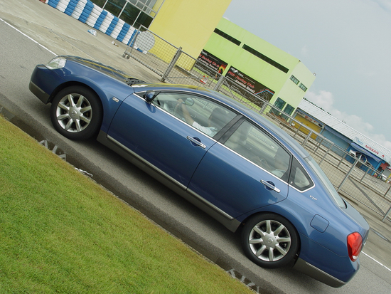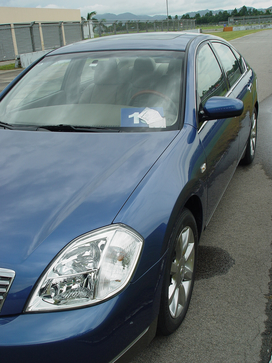 眼前這款碧天藍的天籟初一見面確實給人一種優雅內斂的氣質之感,天藍色的漆面光亮奪目,靈動的光澤蘊涵其中,就像是一位體面的智者,等待著知音的到來。天籟的整體外部造型秉承了日產車系大曲線的特點,縱向的線條盡量選擇了圓滑,而橫向的線條相對比較突出,比如發動機艙蓋上面的突起線條,車身側面的腰線,車尾部行李艙的折線以及貫穿前后保險杠的銀色飾條等。這樣有利于增加車輛的視覺運動效果,發動機艙蓋平緩的曲面設計也是日產車型的特點之一。