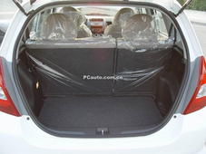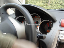 小巧的三輻方向盤上增添了太空銀效果的裝飾條,外輪廓采用了細(xì)密網(wǎng)狀凸起的防滑工藝,握起來很舒適。兩廂飛度的內(nèi)飾色調(diào)有兩種,分別是偏淺的珍珠色(1.3L)和暗一點(diǎn)的深藍(lán)色(1.5L),兩廂飛度安全方面的標(biāo)準(zhǔn)配置還包括SRS雙安全氣囊、帶預(yù)緊裝置的三點(diǎn)式安全帶、ABS+EBD、防眩目后視鏡以及車門內(nèi)防側(cè)撞保護(hù)桿等。值得一提的是位于汽車中部的一個(gè)別致煙灰缸,說是煙灰缸但在筆者看來那是一個(gè)多功能缸,可以當(dāng)水杯也可以放不同的小東西,小編想一般的人是不會(huì)在自己的愛車?yán)锩嫖鼰煹模赃@個(gè)煙灰缸多半是用來做其它事情了。在這里感覺FIT也有不足之處,那就是在音響方面只有前門兩個(gè)喇叭,后門雖然預(yù)留了兩個(gè)位置,但要加裝就要給錢,唉!想占點(diǎn)便宜都不行。