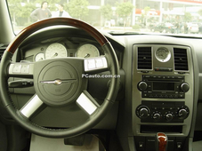 來到300C的儀表盤部分,300C的儀表盤做的是比較特別的,鍍鉻裝飾環,典雅之中有不失動感,白色的面板再加跑車化的設計,讓人坐上去就想點火啟動。變速箱箱采用蛇型設計,讓駕駛者在城市的走走停停中不用擔心掛錯檔,檔桿采用桃木加真皮設計,手感十分的好。克萊斯勒300C的天窗采用一鍵式按鈕,在陽光明媚的郊外打開天窗還能為乘駕者添加幾分好心情。