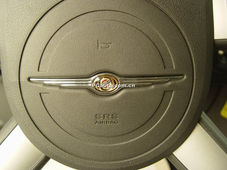 進入到克萊斯勒的內部,首先給你的感覺就是大,不論是前排的駕駛空間還是后面的乘坐空間,我們先來看看前面部分吧。我們這次試駕的300C采用的是深色內飾,這首先比較符合整車的外形部分,看上去有一種莊重感,方向盤和座位采用真皮裝飾,方向盤是四幅式的在上面部分還有桃木裝飾,四幅式的面部采用白色設計,上面還有汽車音響聲音大小等控制按鈕,中部大大的克萊斯勒廠徽鑲在中間,印證著品質和信心。
