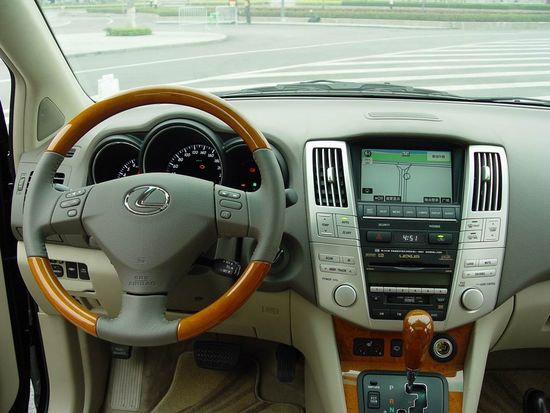 進入RX350如同之前的RX300一樣,表現著日系車輛特有的豪華,只不過和RX300相比,將這種程度表現的更加淋漓盡致。三廂式光電子儀表盤配以漸進式照明系統,增添了一種SUV應具備的粗曠感。每當發動機啟動,計時指標與數字盤會先后亮起,人性化科技理念展露無遺。