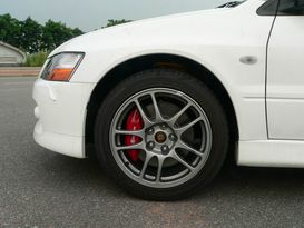 第8代EVO采用了龐蒂亞克風格的格柵,EVO IX則恢復了以前的風貌,格柵上的三菱標志格外醒目。車前后燈使用了茶色燈罩,橢圓形霧燈十分別致。EVO IX和RS版配備了新的雙五輻Enkei車輪,每支車輪的凈重較以前減輕了0.15千克。