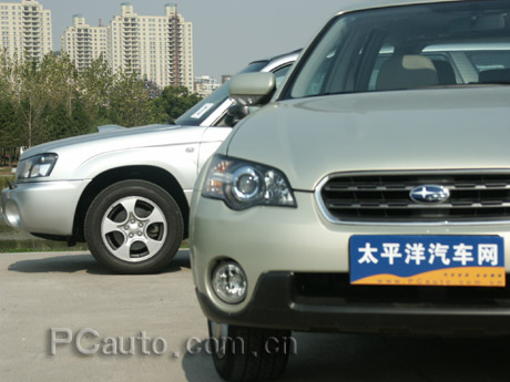 有時候在上海的馬路上可以偶爾看到森林人的身影,其實很多人選擇森林人的原因就是這款車型既像轎車又像吉普車。目前在國內(nèi),像森林人這類STATION WAGON車型還十分罕見,它歸屬SUV類,北美市場此類車比較多,而正式引入國內(nèi)銷售的只有三款,分別是富士的森林人(Forester),和奧迪的ALL ROAD,富豪的XC70。 森林人于1997年正式推出第一代,以翼豹轎車IMPREZA的底盤為平臺,融合轎車、MPV和越野車的特性開發(fā)的SUV,推出的幾年時間里獲得不少稱贊。而此次我們試駕的富士森林人為二代,第二代產(chǎn)品首次在日本推出的時間是2002年,隨后在歐洲和美國市場也嶄露頭角,比起上一代有了許多改進。 森林人外形低調(diào),唯一引人注目的是其引擎蓋上的進氣口。在我們這次評測的四款車中只有它和翼豹是帶有此種進氣口的。2.0XT版雖然總高僅1585mm,但離地間隙卻有195mm。從外觀上,已經(jīng)很難將它歸類于SUV或是轎車。