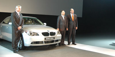 對(duì)于BMW5系的外觀,我們?cè)偈煜げ贿^,此次華晨寶馬新投放的5系Li版在外形上現(xiàn)有的款式?jīng)]有任何的區(qū)別。但是為了增加后排的舒適性,在軸距和車身高度方面做了一些改變,軸距增加了140mm,達(dá)到了3028mm,比現(xiàn)有國產(chǎn)奧迪A6L還要長出83mm,在這個(gè)級(jí)別車型中,可謂無車能比。我們此次試駕的是530Li版,華晨寶馬表示,等11月18日北京車展時(shí)將一起發(fā)布523Li和525Li的市場(chǎng)售價(jià)。