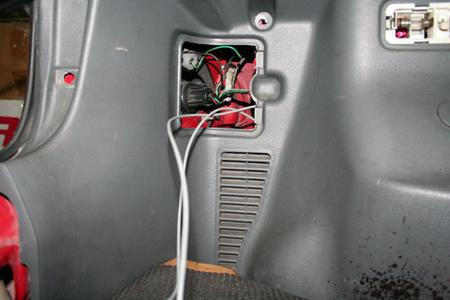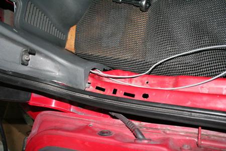 然后再將線路拉至圖中所示之處,并穿過右側(cè)飾板,從方向燈開口處拉出。
