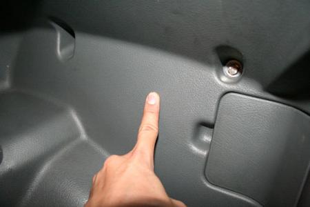 之后取下位于行李廂內(nèi)側(cè)的方向燈護板與下方飾板,準備進行牽線動作,下方飾板拆除的方法為先扳開底部的卡榫,再從防水膠條內(nèi)側(cè)處扳開上方卡榫,即可順利拆下。