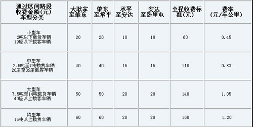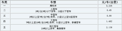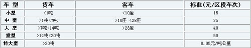 據(jù)介紹,不同省市的收費(fèi)標(biāo)準(zhǔn)不同。如北京境內(nèi)每公里收費(fèi)標(biāo)準(zhǔn)是:小型車0.34元,中型車0.47元,大型車0.61元,重型車0.81元;天津境內(nèi)每公里收費(fèi)標(biāo)準(zhǔn)是:小型車0.71元,中型車1元,大型車1.16元,重型車1.43元。