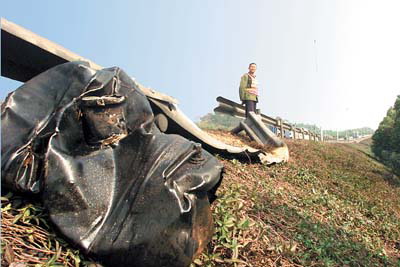 據多位目擊者介紹,事故發生于昨日早晨6時許,當時一輛載煤的東風貨車正自西向東行駛,改變車道時與后方同向行駛的平板車碰撞。貨車受到沖力后方向偏離,當即倒向一側欄桿,并沖跨高速護欄沿斜坡沖下,至斜坡底部河塘鐵網護欄方才停下,所載煤塊全部散落在地。貨車車頭凹陷,毀損嚴重,平板車車頭也已破損。貨車司機腿部被挫傷,但無大礙。