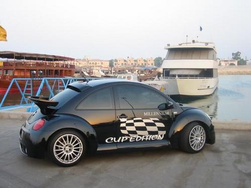 黑黝黝的身軀,圓溜溜的大眼睛,比賽專用的車身拉花的黑白格格,一看,甲殼蟲搖身變成了小烏龜,更加充滿了可愛,俏皮,還有一點(diǎn)放肆,如果擁有一輛這樣的汽車為伴,生活中的樂趣該會(huì)增加許多。不過,在甲殼蟲身上加上比賽專用的車身拉花,目的應(yīng)該更深遠(yuǎn)點(diǎn)的吧。難道要成為“蟲蟲賽車”?