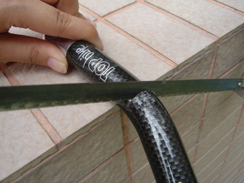 鋁合金把手為中空設計,用一般鋸子或砂輪機就能輕松鋸斷,并利用砂紙將末端金屬毛邊打磨,并蓋回原來的塑料蓋。