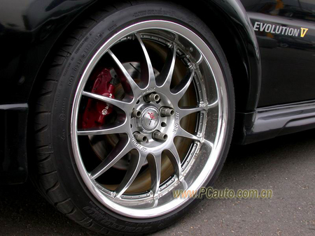 車跑得快了,但原廠菱帥的剎車系統則遠未能滿足該車巨大動力的剎車需要,與其改裝其他品牌的剎車系統,倒不如更換后期LANCER EVOLUTION的BREMBO剎車系統,前剎車采用4活塞對向分泵,后剎車則為雙活塞對向分泵,這樣的剎車力道足以滿足該車的需要,而且最重要的是這套剎車系統不需要改裝剎車橋位即可輕松安裝上。