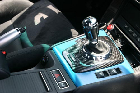 既然車主以打造最速M3為目的,除動力升級外,怎么會忘記針對車重進行減輕呢?且還有CSL套件可供使用,因此這部車上出現了濃厚的CSL影子。首先要換掉的是兩張原廠重量超重的電動椅,車主以兩張CSL麂皮桶椅作為替換,由于此椅是利用強化玻璃纖維作為椅背骨架,因此重量很輕,可減輕25公斤以上的車重。其次就是CSL上最顯眼的含鴨尾行李廂蓋,不過車主并非使用CSL原廠套件(因無對外販售),而是使用來自美國的REVO制套件,不只如此由于CSL原廠行李廂蓋,是以SMC多重塑料復合素材制作而成,而REVO則是全碳纖維品,所以實際上強度更佳(單價4萬元)。外觀除上述改裝外,前葉魚鰓散熱孔同屬CSL的正品,其車頭有著Hamann的水箱護罩、進氣口與左右兩邊的G-Power碳纖維下巴,后車頂還加入AC的擾流片,結合低矮車身與19吋胎圈后,更顯現出與一般M3不同的氣勢。