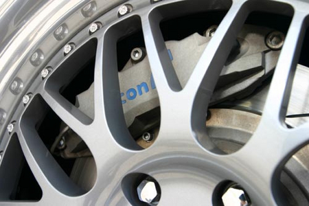 至于影響生命安全的煞車系統(tǒng),則用上Porsche GT2原廠配置的前六活塞卡鉗,搭配直徑達(dá)380mm浮動(dòng)式超大碟,后煞車系統(tǒng)則使用Alcon對(duì)向四活塞卡鉗加345mm雙片式碟盤,同樣高檔,整體犀利程度不亞于競(jìng)技用車。為容納此碩大的卡鉗與碟盤,Tuner特別選擇HRE 540的三片鍛造19吋輪圈因應(yīng),HRE鋁圈不只重量極輕,還能訂做適當(dāng)而向外的E.T.值及J數(shù),所以既可閃躲煞車又能加寬輪距,不過每只高達(dá)5萬(wàn)元的高單價(jià),倒也不是一般人可接受。至于輪胎則選用米其林PS2,尺寸為前245/35/19(8.5J)、后275/30/19(9.5J)。