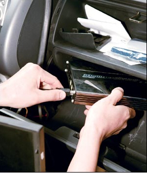 把e-manage Ultimate通過專用的線束與原廠電腦連接。