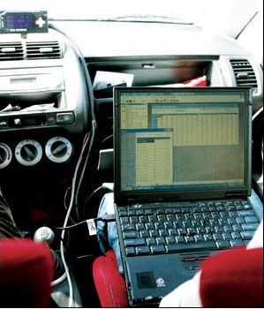 一切連接完成后,把空燃比表固定于中控臺上方便讀取數據。在調試軟件中選擇對應的發動機型號,內置軟件將自動確認某些原廠數據。這樣就可以開始上路調試了。