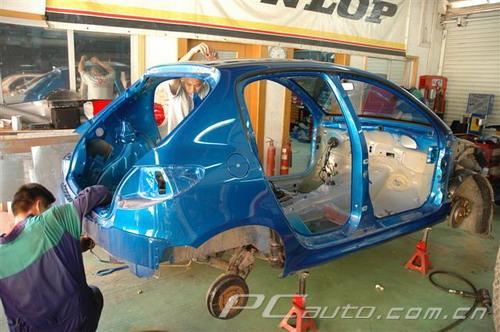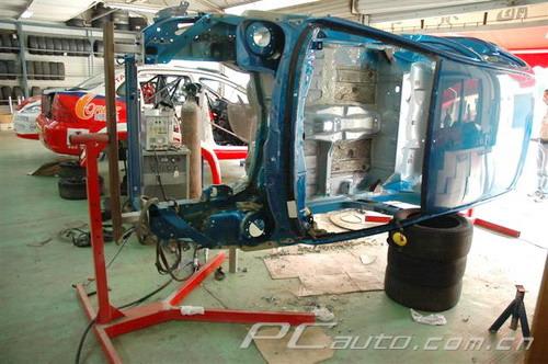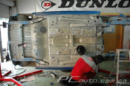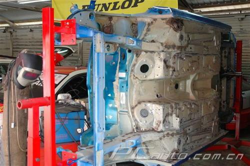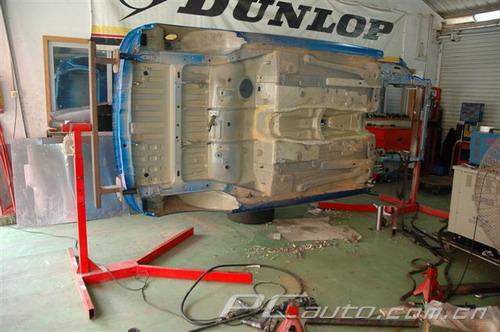 現在車架完全赤裸裸了,可以把車放上燒豬架