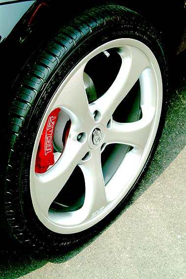 TechArt提供特種輪胎:新保時捷911 Carrera或CarreraS的擁有者可以將車輪換成那種引人注目的,重量較輕的TechArt獨有的五輻輪轂,直徑分別為18-,19、20或22英寸。TechArt為敞篷版Carrera特別配備了輪轂,前輪的尺寸是8.5Jx20后輪尺寸llJx20。TechArt推薦在這種車輪上安裝在235/30ZR20和305/25ZR20的Conti Sport Contact2 Vmax輪胎上。