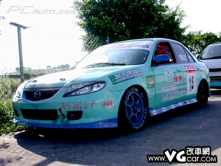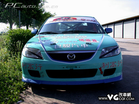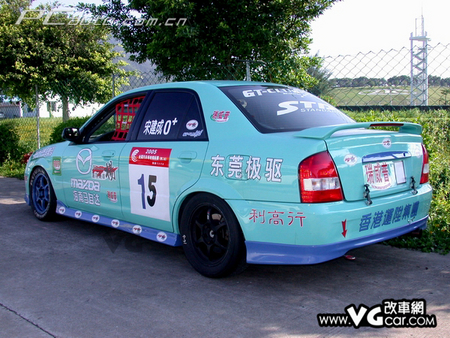 這臺323來自于運升賽車隊,參加的是2000cc組的比賽。由于賽例的規定,所以這臺323的1800cc引擎本體并沒有太大的改動,吸氣方面也同樣因為賽例的原因而被逼使用上原廠風箱,只是里面已被金屬網取代了原廠的紙風隔。賽車排氣聲浪的要求遠比一般街車為低,所以排氣管均換上直徑較大和回壓較低的制品,較一般街車擁有絕對的震撼度。這樣的設定除了聲浪過高不適合街道使用外,由于回壓較低的緣故,一般街道低轉使用起步加速會顯得相當吃力。為了減低引擎的負荷,平時街道使用必備的冷氣系統在賽車里也被卸下,再加上賽車手全身穿得密密實實的防火衣和頭盔,可想而知賽車是多么艱苦的一項運動。